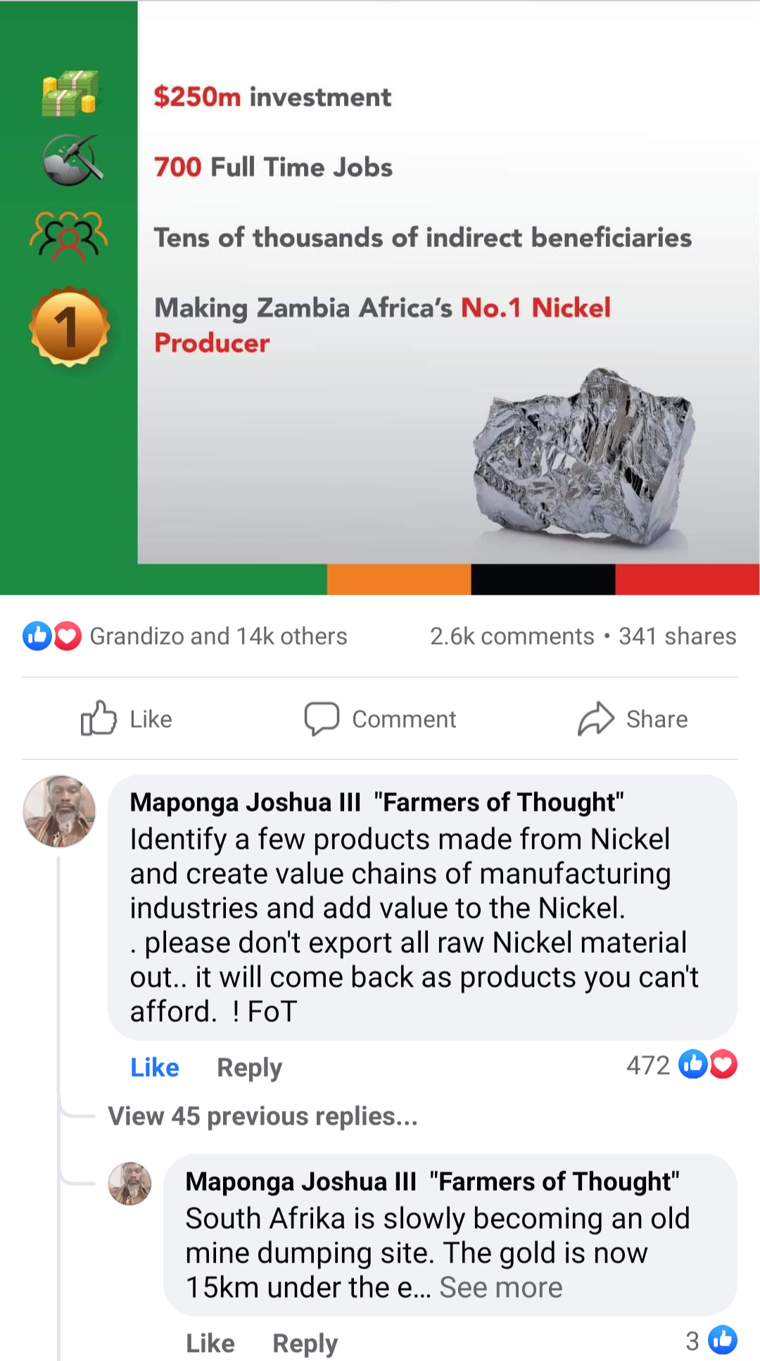 In actual sense, you’ve done a huge favour to the person who took it away, to refine it, and sell it onwards. You could have borrowed some money, bought the machinery to refine the stone, did the refinery on your own, and sold the stone yourself for $700, $800 … a buyer would have been found. There was no real reason for you to share the wealth from your garden with them. It points to your goodness of heart…not the other way round.