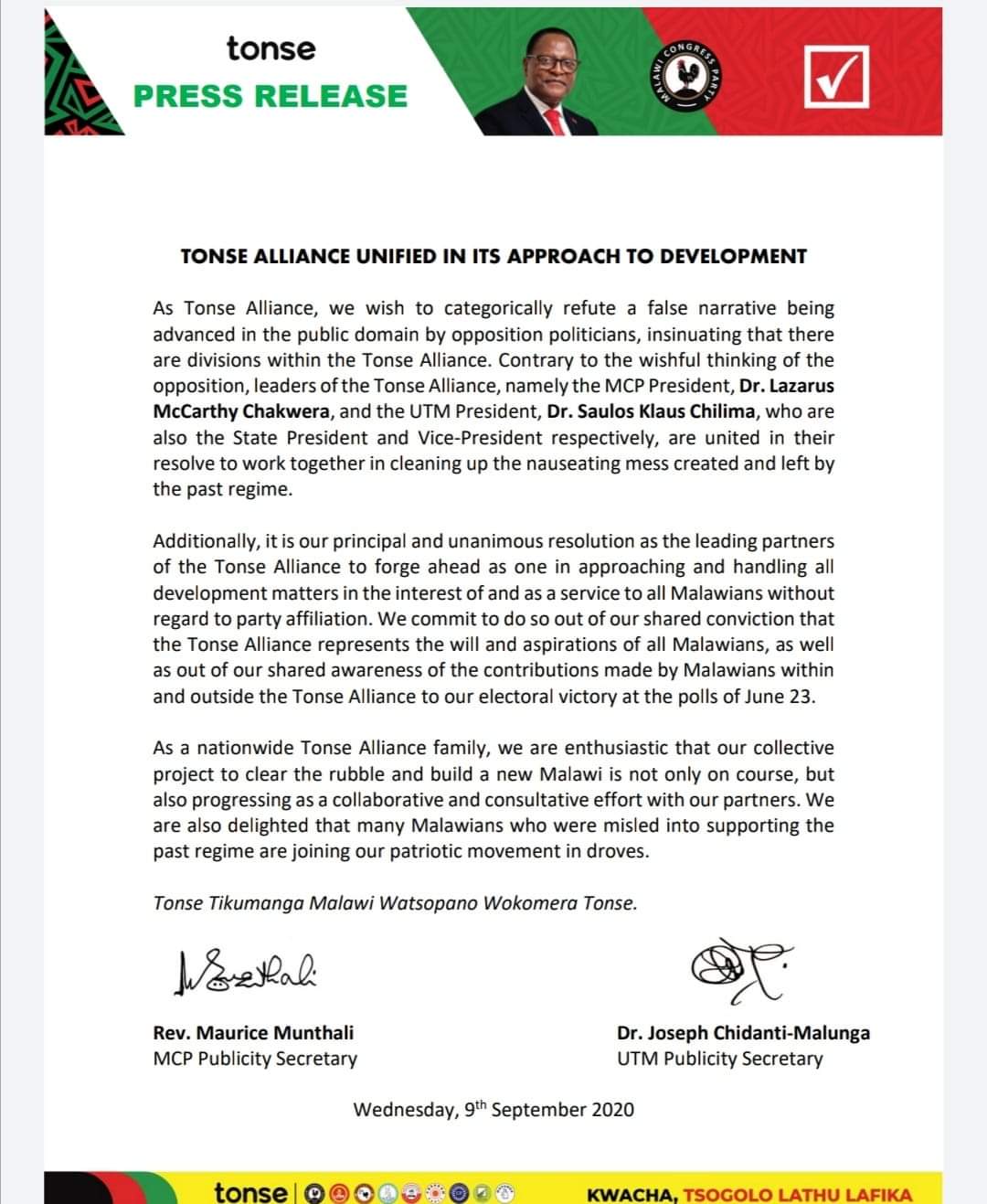 So, just because UTM was in an alliance with MCP did not mean that the late Saulos Chilima agreed with everything Lazarus Chakwera suggested or vice versa.