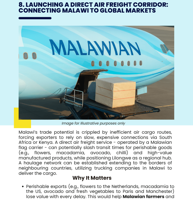 Now is the time for Malawi’s leaders to step up and deliver. The country’s future depends on their willingness to act with urgency and vision. Already our neighbours are making incredible strides and progress, while our economy remains stagnant. This report provides the tools, approach and methods for moving things decisively forward. What is needed now is the political will to implement them.