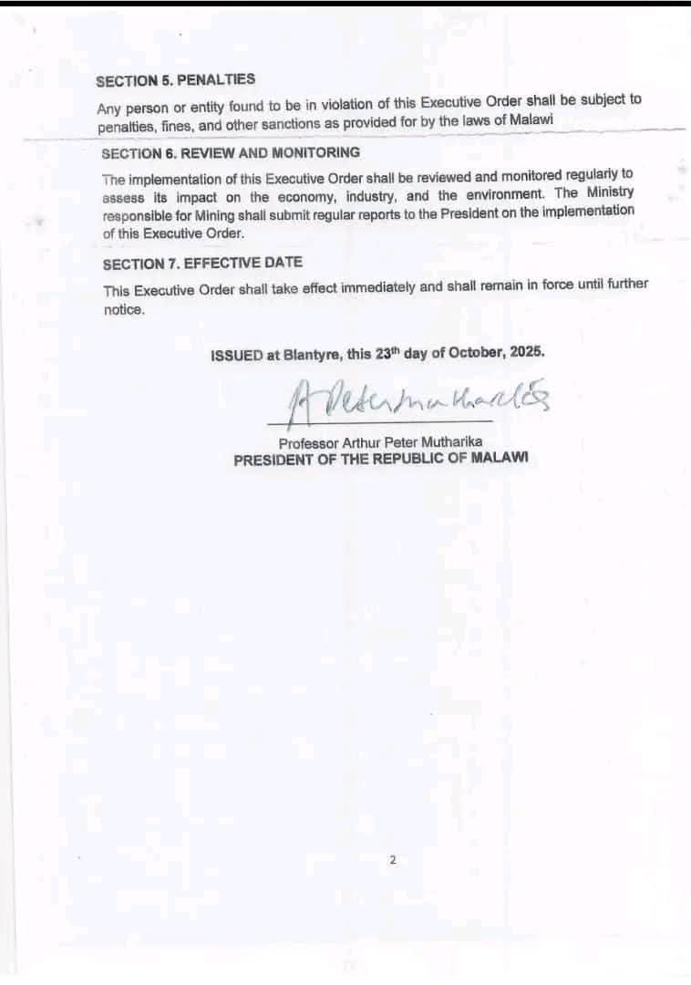 Malawi’s existing Mines and Minerals Act stipulates penalties for illegal mineral exports: individuals face fines of 10 million Malawian Kwacha plus double the value of illegally exported minerals, alongside two years’ imprisonment. Non-citizens face potential deportation. Corporate entities face 20 million Kwacha fines plus double the mineral value. Managers and directors may face personal imprisonment. On paper, these penalties appear substantial. In practice, enforcement depends on detection capacity, border control effectiveness, and judicial follow-through. Further, it’s currently not clear whether the stipulations of this executive order, fall under these provisions of the Act.